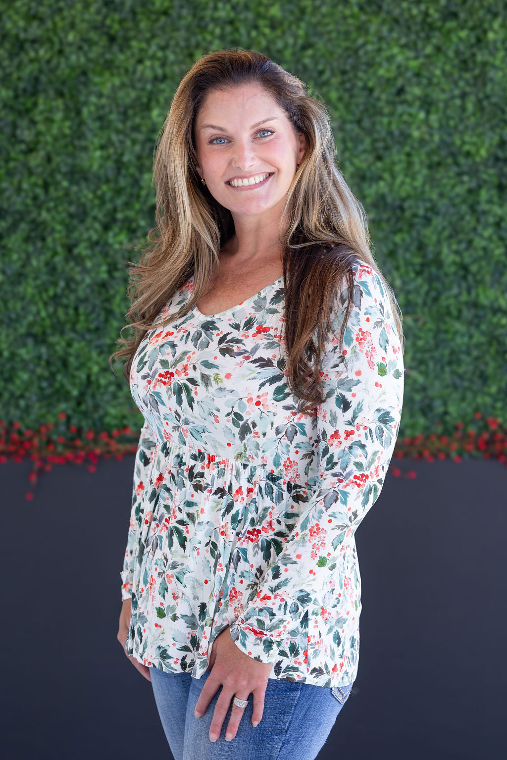Long Sleeve Sarah Ruffle Top in Winter Berry
