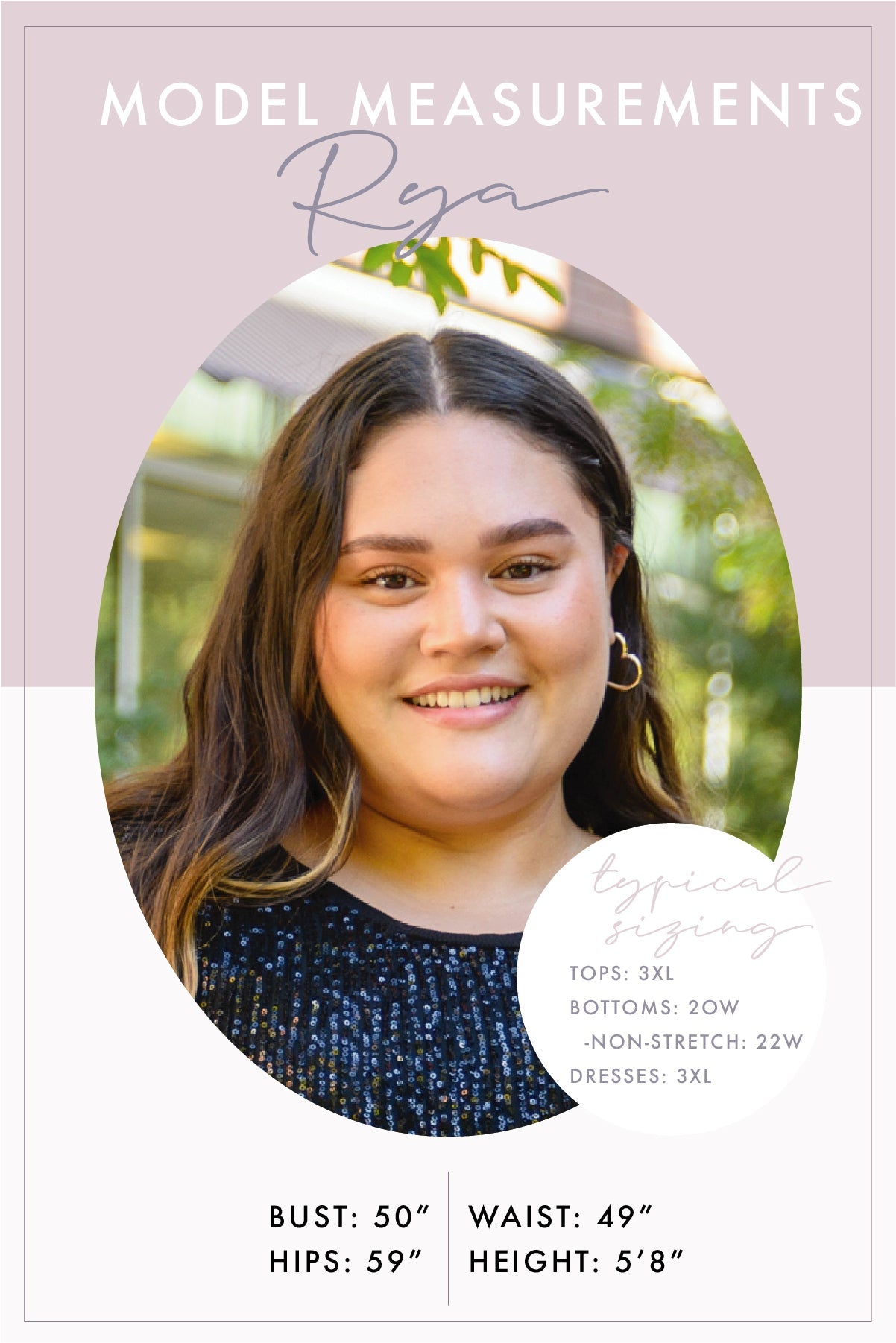 Sabrina is wearing size S. Rya is wearing size 3XL